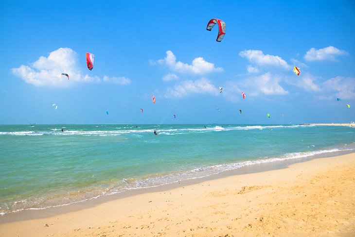 Designed to resemble a billowing dhow sail, the exterior of the building is lit up by a choreographed, colored lighting show at night.